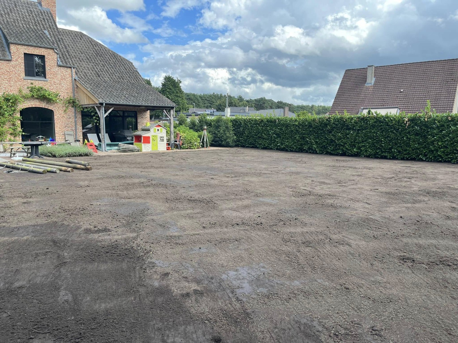 Een goed genivelleerd terrein is de sleutel tot stabiele, waterpas en duurzame resultaten. Wij brengen uw terrein exact op niveau, met de juiste hellingsgraad voor waterafvoer, afgestemd op architectuur, straatpeil en aanpalende percelen. Ideaal voor funderingen, verhardingen, opritten, terrassen en gazon.