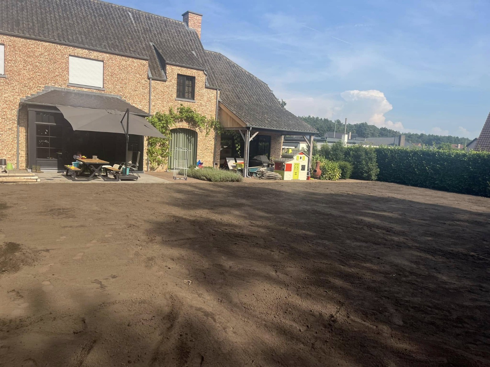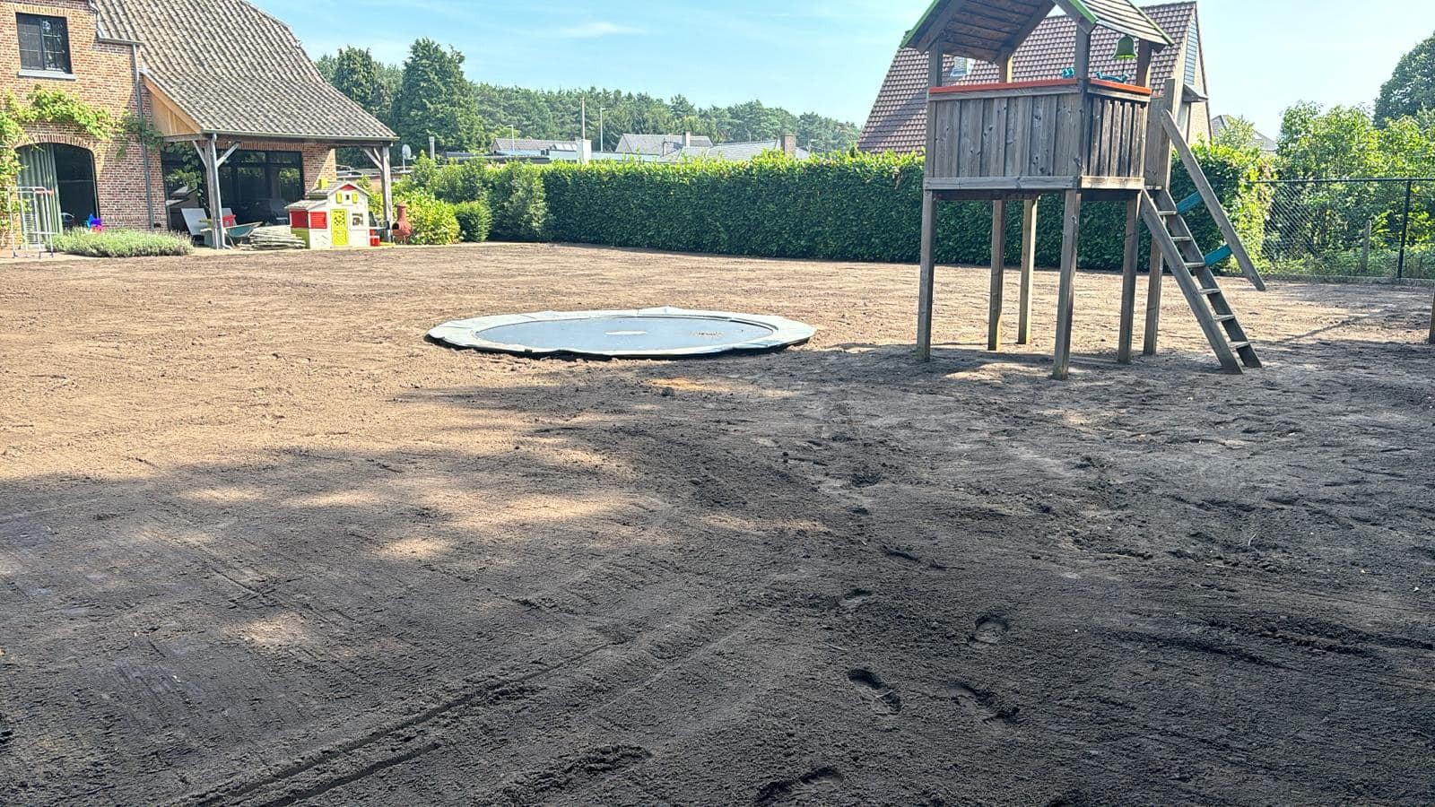 Bouwgrond, tuin, oprit of terras egaliseren? Grondwerken Moons zorgt voor een perfect profiel, juiste hellingen en een stabiele ondergrond — indien nodig met drainage of stabilisatie.