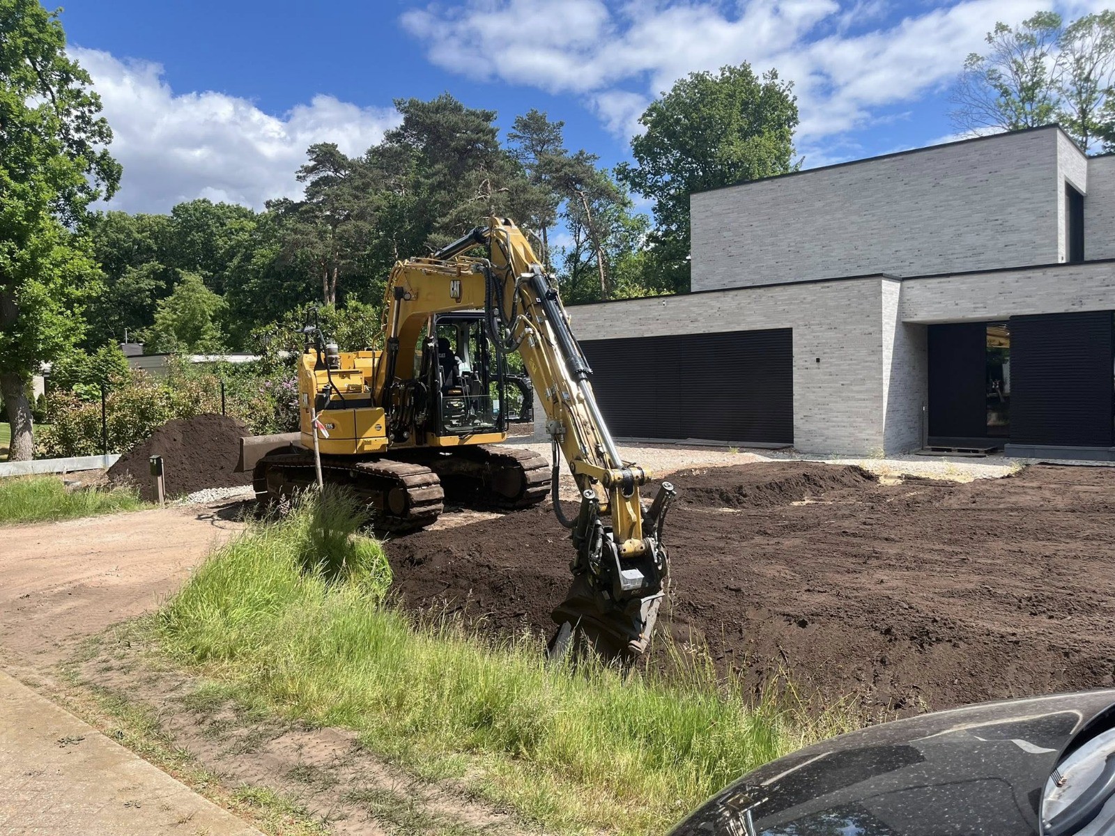 Met laser- en 2D/3D-sturing werken we tot op millimeterniveau. We verwijderen of verplaatsen grond, brengen teelaarde of onderfunderingen aan en profileren strakke taluds. Indien nodig voorzien we drainage of stabilisatie met steenslag/zand – klaar voor de volgende fase.