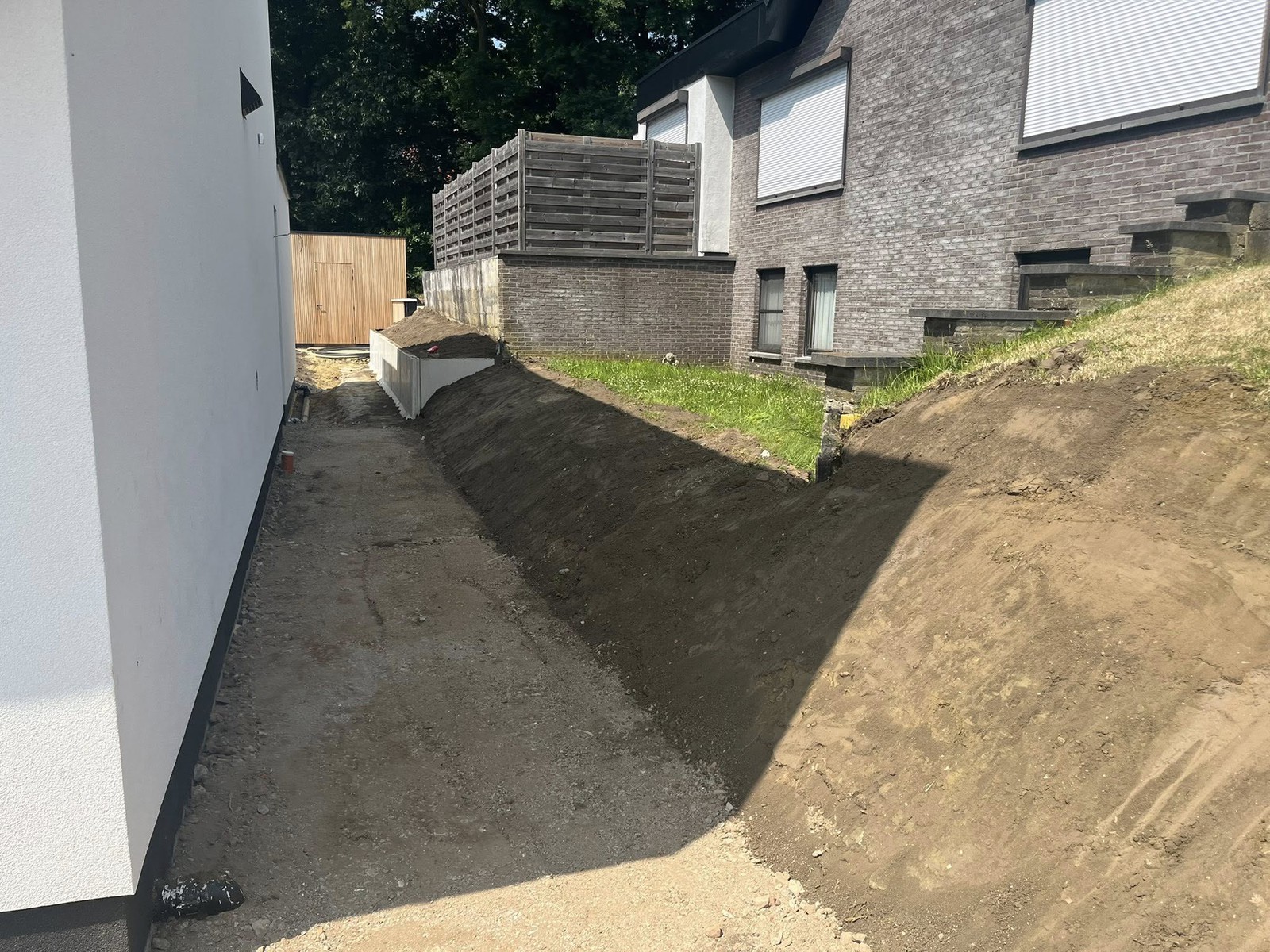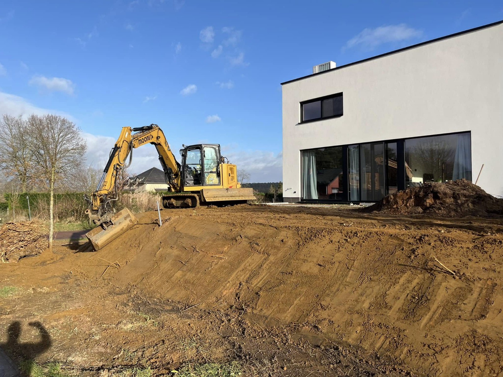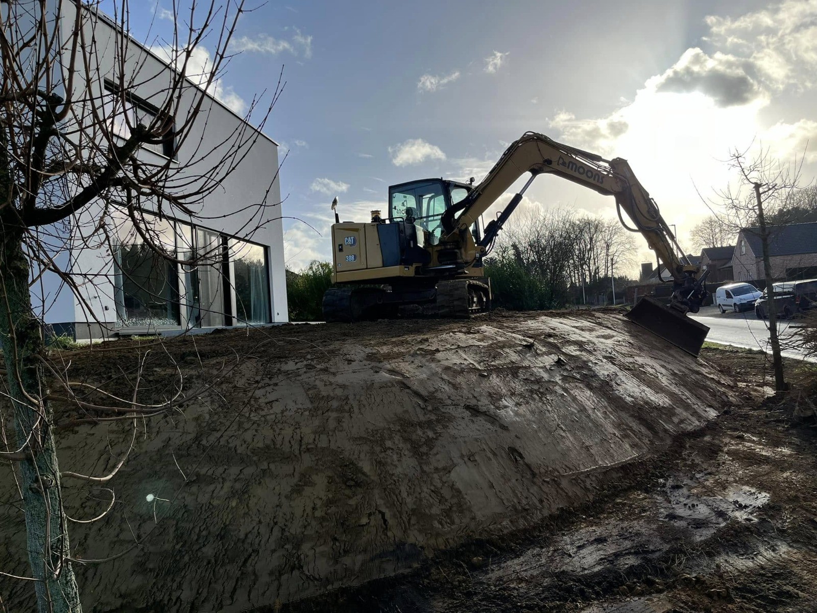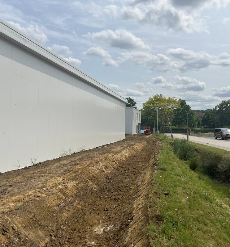 Regenwater lokaal bufferen en infiltreren? Grondwerken Moons ontwerpt en plaatst wadi’s met de juiste profielen, aansluitingen en afwerking — technisch correct en mooi geïntegreerd.