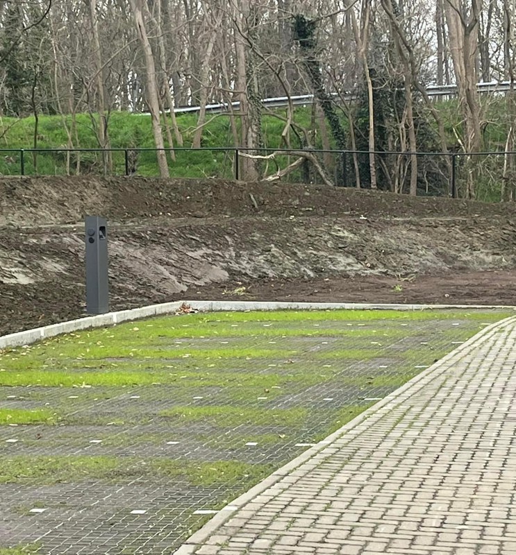 Groene afwerking met gras of kruidenmengsel — functioneel én mooi in tuin of opritzone.